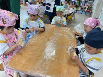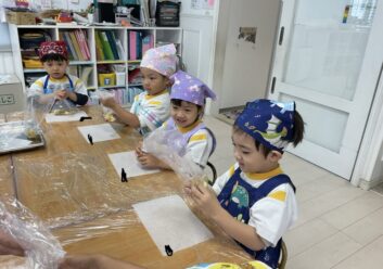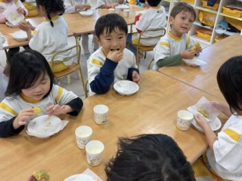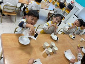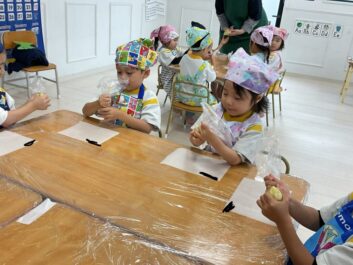 They enjoyed squishing and making shapes with the mashed sweet potatoes.