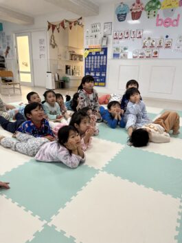 そして、Class Roomでmovie を見ました!ゴローンと寝転がる子、お友達と笑いながら見る子、みんな可愛いです^^