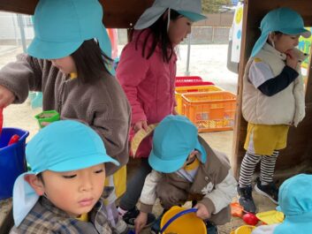 ChristmasでSantaからもらった Sandbox Toys で楽しそうに遊ぶ子ども達、私たちまで笑顔になりました♪