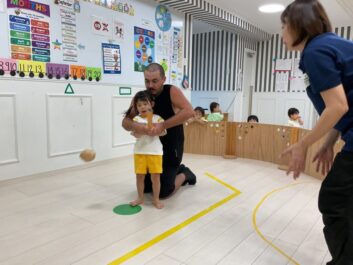 それから、実際にbasketballとbaseballとかけっこをしました。