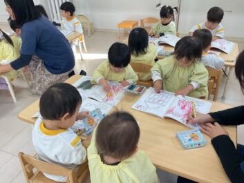 ワークブックに取り組むサンシャインクラスのみんなです♫