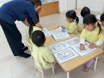 マウスクラスさん(2歳児さん)は、書き順も意識しながら点線をなぞって頑張りました!