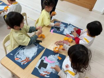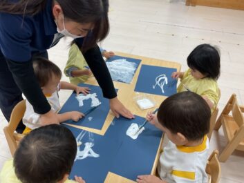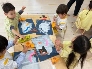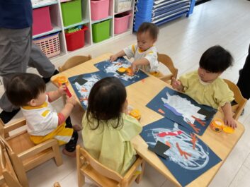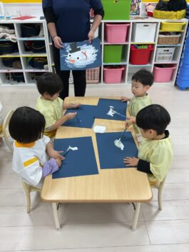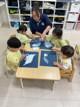 筆を使って、Craftをすることが楽しかったようで、一生懸命塗っていました。