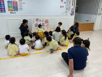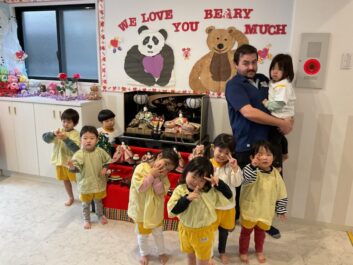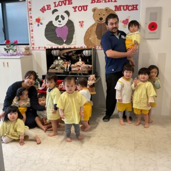 その後、みんなでエントランスに飾ってある本物のお雛様のところへ行き、写真を撮りました*\(^o^)/*これがprincess?こっちは?と嬉しそうに園のお雛様飾りを見つめるみんなでした。