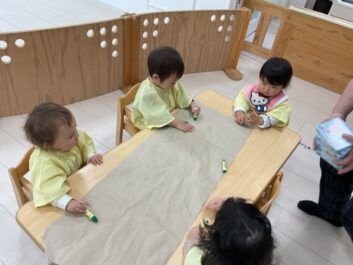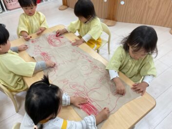 教室に飾るこいのぼりを描きました。廃材やクレヨン、製作で余った画用紙を活用してSDGsにも取り組んでいます♪